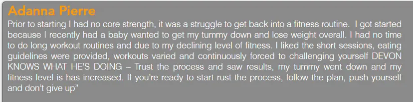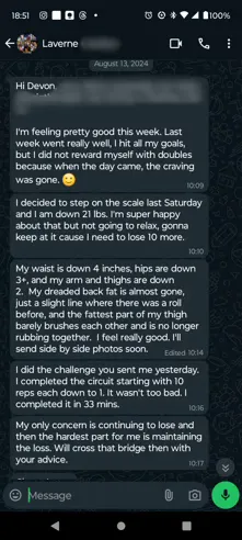 Our program is DESIGNED to help you build self-confidence from day one. We have a unique approach to setting you up for success from day 1. working on your mindset and changing negative self-talk. Many of our clients have always made everyone and everything else a priority while neglecting their own needs. We start by teaching you to make yourself a priority - and it's not being selfish. That in combination with our level of support, accountability and how we tailor everything to fit your lifestyle and goals has been the foundation of many of the success stories you see on this page.